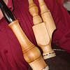 The external shape is based on engravings and woodcuts from the 13th to 15th centuries. The chanters are preferably made with a cylindrical bore with a single arundo donax reed. I also make instruments with a conical bore and double reeds. The sound of this instrument balances well with shawms.